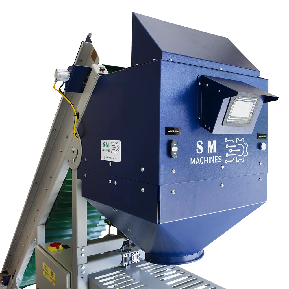 • Regulagem por botão para diferentes caixas e sacarias, otimizando o tempo.